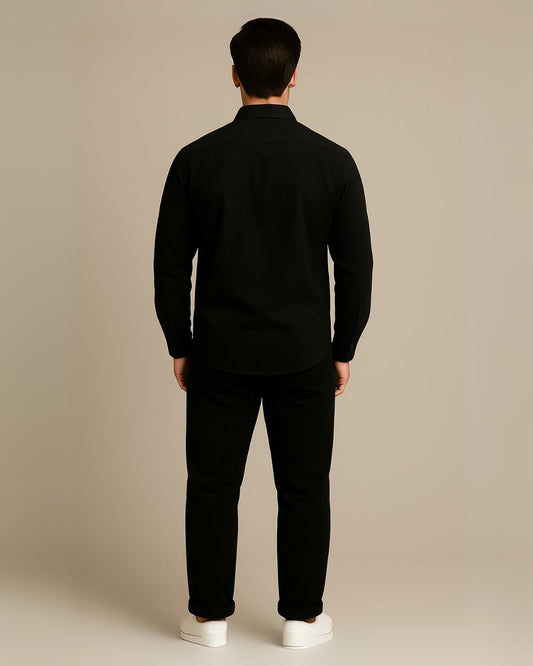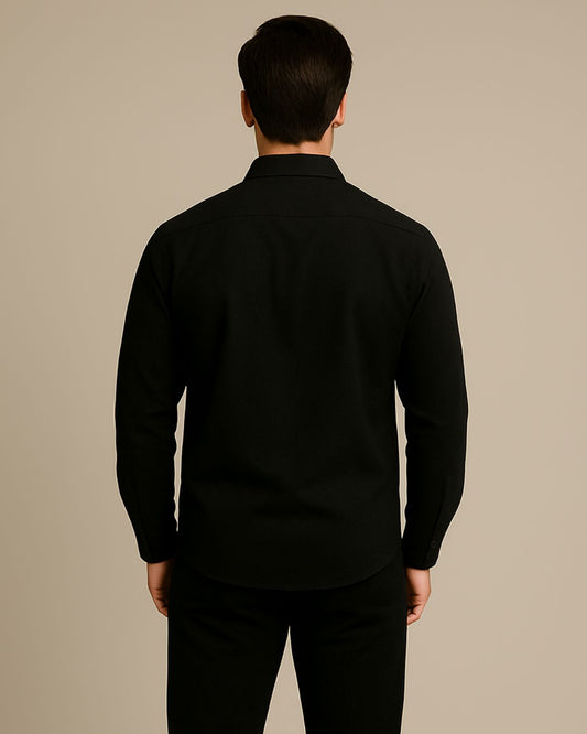 MEN'S FEATHER EGALE SILK FULL SLEEVE BLACK SHIRT