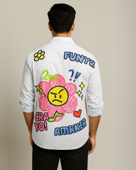 MEN'S FUN AND CLAY FULL SLEEVE WHITE OVERSIZED KNITTED SHIRT(*)